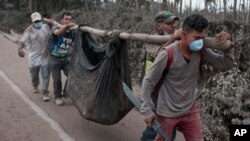 Wadanda suka tsira daga aman wutar Fuego a kasar Guatemala sun fara zaman makokin mutanen da aka gano gawarwakinsu yau Talata bayan da aman wuta, da iskar gas da kuma barbashin duwatsu suka kashe akalla mutane 69, toka da laka kuma suka lullube kauyukan dake kusa da wurin.