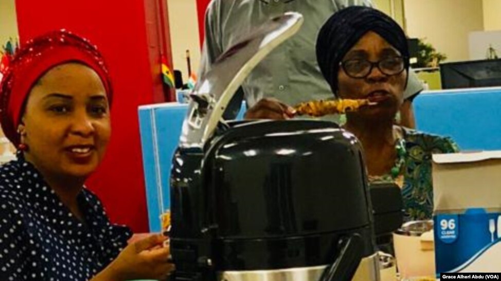 Daula Salim da Alheri Grace lokacin buda baki a ofishin Muryar Amurka.