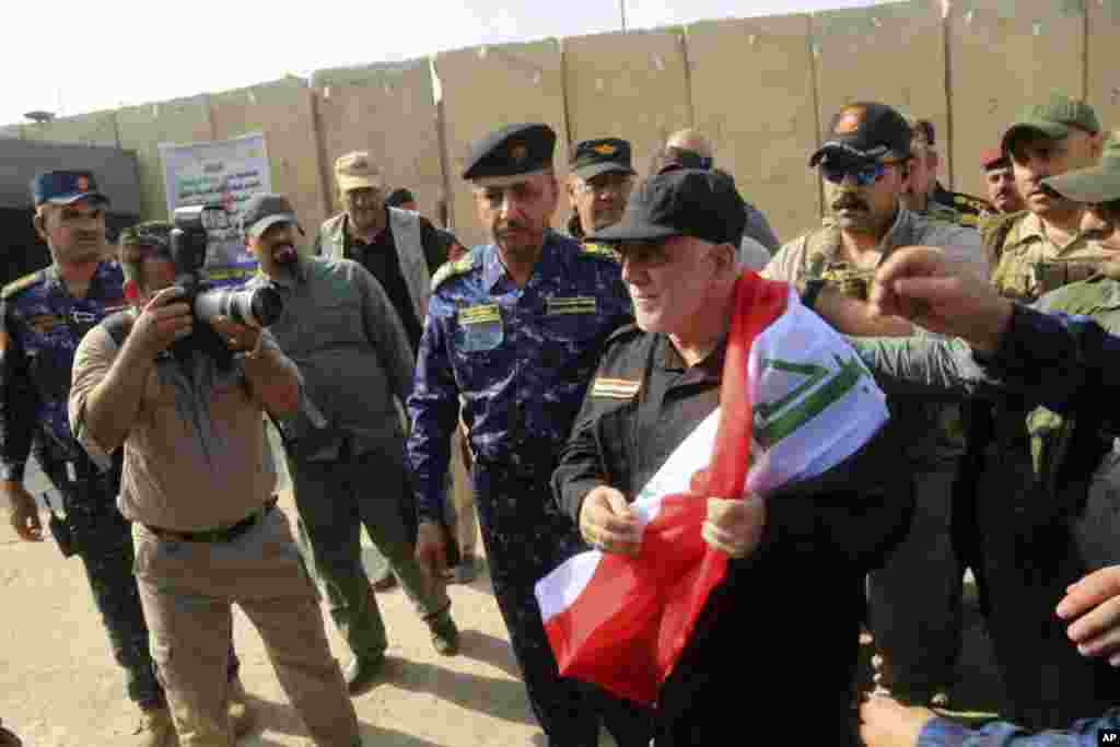 Firaministan kasar Iraq Haidar Al- Abadi ya kai ziyara a garin Mosul inda ya dauki tutar kasar Iraqi ya nunawa yan kasar cewa sun kwato garin Mosul daga hanun yan ISIL bayan harin da suka kai musu, ranar Lahadi 9 ga watan Yuli na shekarar 2017.