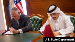 Bayan wata ganawa da suka yi a makon nan da ministan harkokin wajen Qatar Mahammed bin Abdulrahaman al-Thani, Tillerson ya sanar da cewa Amurka da Qatar sun sanya hannu a kan wata yarjejeniya da ta tanadi cewa Qatar din zata dauki matakan da za su toshe duk wasu hannyoyin samar da kudaden gudanarda ayyukan ta’addanci.